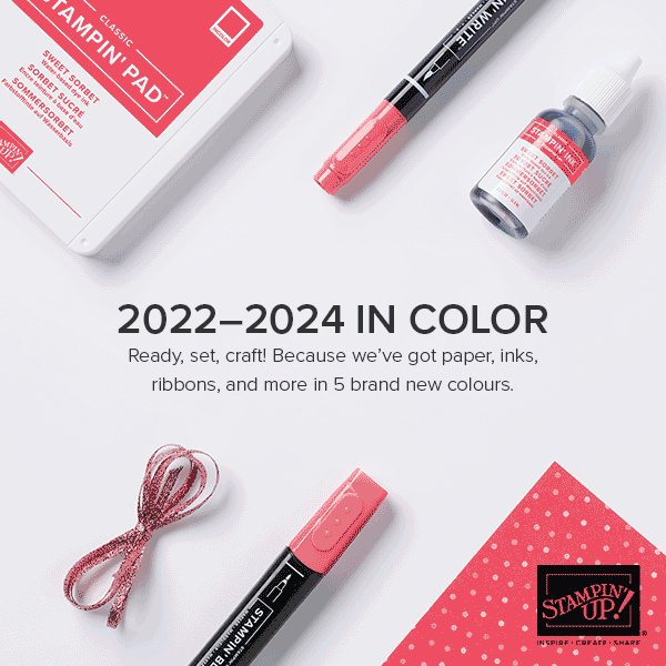 By the end of Club, you will have collected a full pack of each of the 2022-2024 In-Color Card Stocks, the 5 coordinating Ink Pads, Ink Refills, Markers, and Stampin' Blends, a Full Spool of each of the 2022- 2024 In-Color Ribbons, Full Spools of Baker's Twine in each of the Colors, A Full Pack Of 2022-2024 In Color Glimmer Paper, the 2022-2024 In-Color Dots Embellishments, and a Full Pack of the 2022-2024 In Color Designer Series Paper. The In-Color Dots and the Designer Series Papers are FREE - as my Gift to you - for participating in our Club.